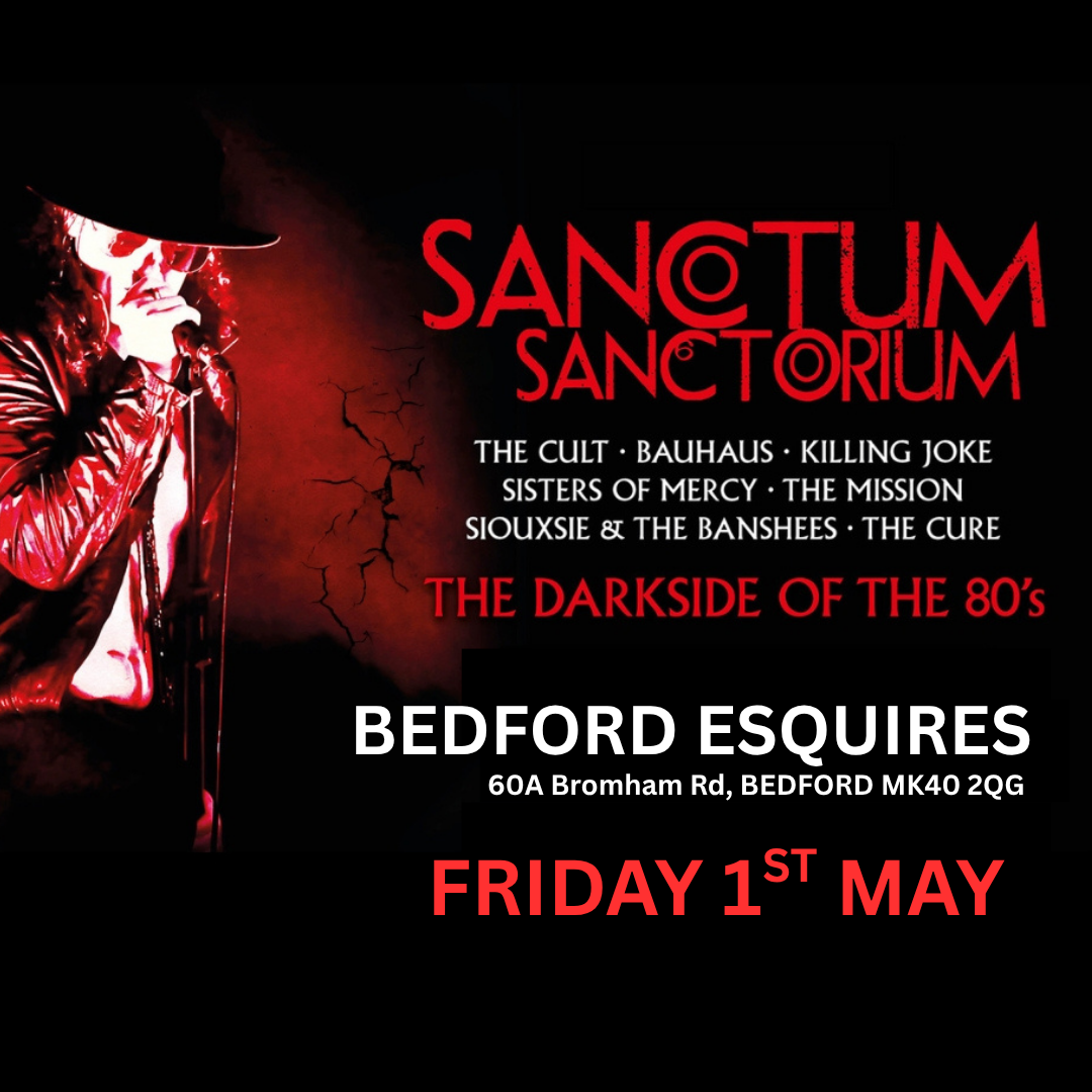 Sanctum Sanctorium : The Darkside of The 80s 7:30pm, Friday 1st May, Bedford Esquires. Formed through a mutual love of 80’s goth and alternative rock music. Sanctum Sanctorium are a live 6-piece band that faithfully recreate classic hits by artists …
