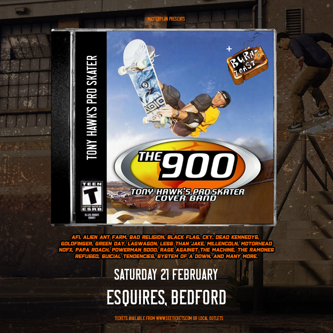 The 900 - The Tony Hawk Pro Skater Cover Band + Guests: Burnt Toast 19:30, Saturday 21st February, Bedford Esquires Picture this… It’s August 1999, people are getting excited about Red and Blue Pills, Star Wars have embarked on the …