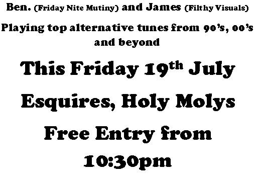 Ben. (Friday Nite Mutiny) and James (Filthy Visuals) bring you all the top tunes from the 90’s, 00’s and beyond, requests are more than welcome, lets have a party!!