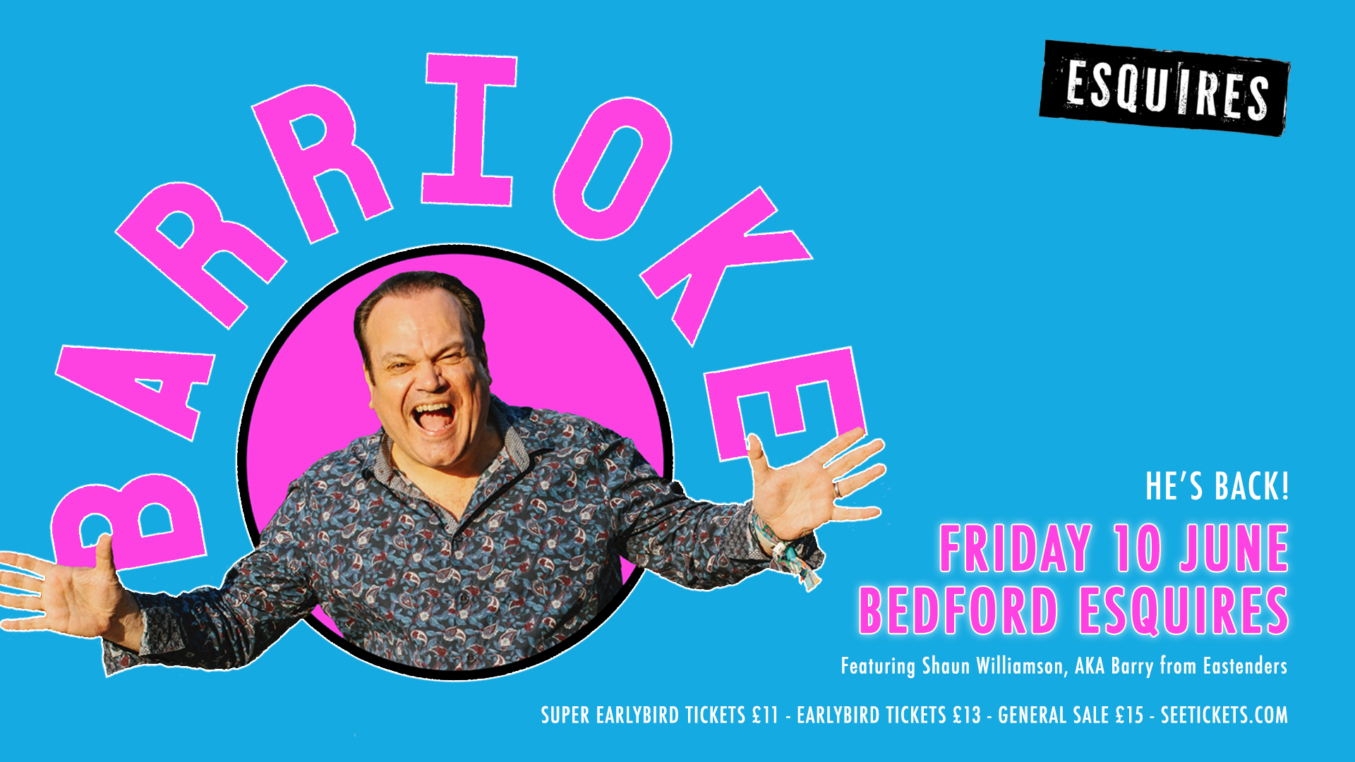Probably the single greatest event we have ever booked is returning for round two, following the sold out show last year! From the fields of the festivals to the stage at Esquires, Barry from Eastenders (Shaun Williamson) is bringing Barrioke to Bedford!