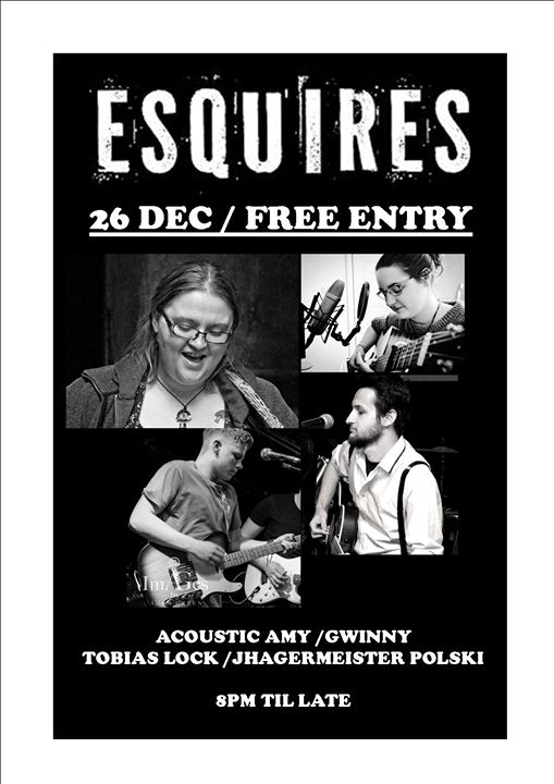 Acoustic Amy hosts a boxing day party in Danny’s bar at Bedford Esquires. Support from Gwin Xanthe Tobias Lock and Jhagermeister Polski…