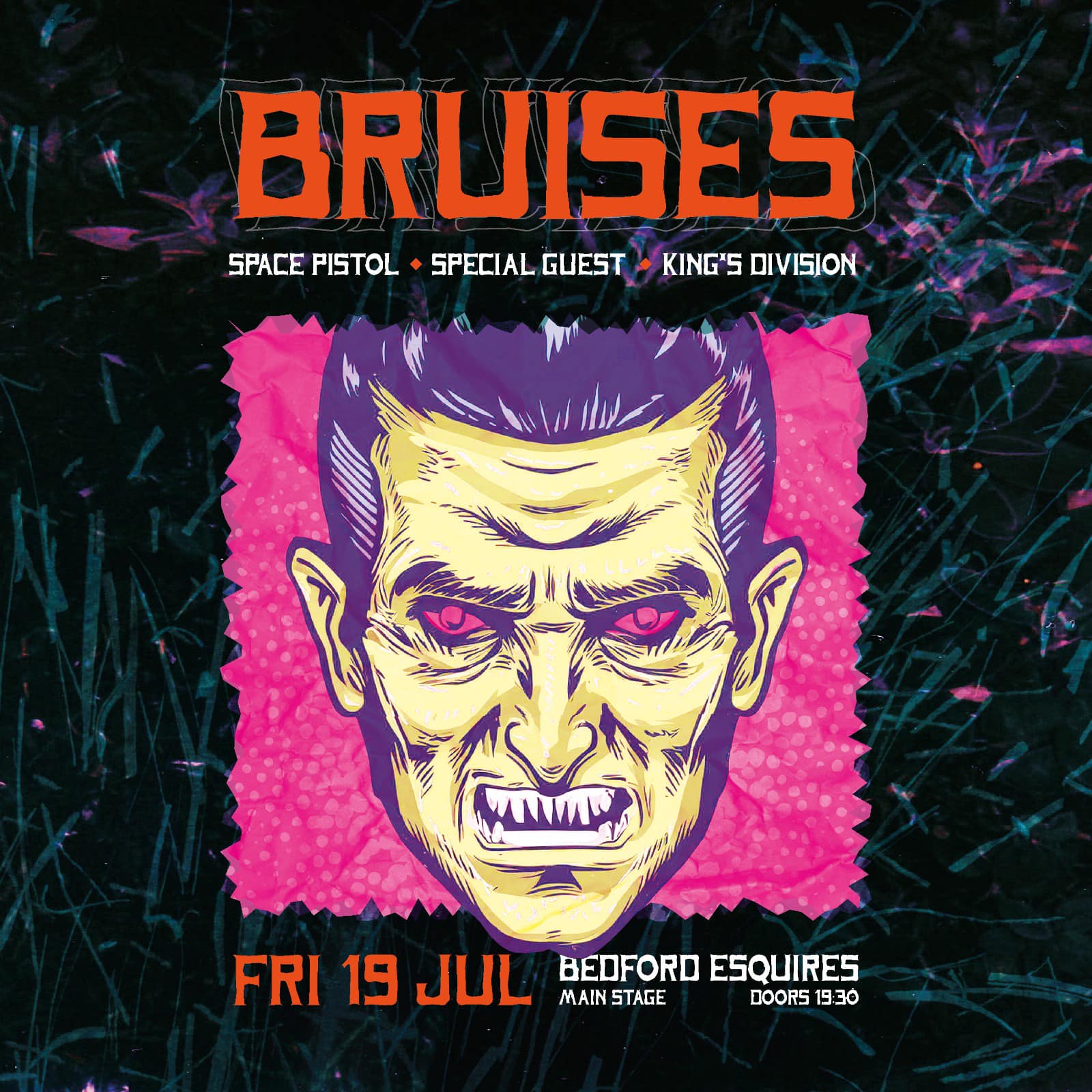 BRUISES make a welcome return to the live fold, as they join us on Friday 19th July, with support from SPACE PISTOL, KING’S DIVISION & a secret, special guest.