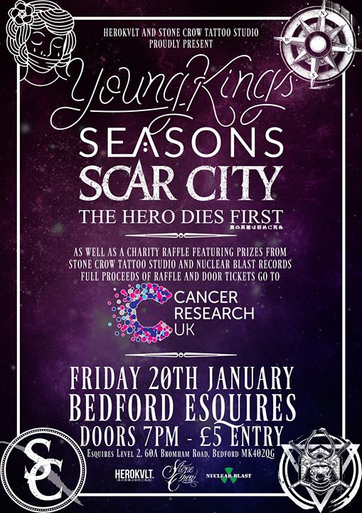 This event is to raise as much money as possible for Cancer Research UK. All ticket sales will go towards the total, aswell as a huge raffle featuring prizes from Nuclear Blast Records, Trooper Beer and Stone Crow Tattoo!