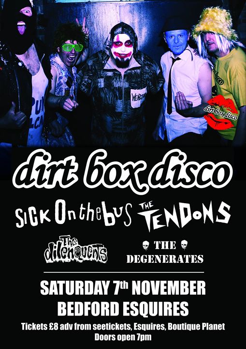 Available now from: http://www.seetickets.com/event/dirt-box-disco-sick-on-the-bus-the-tendons/bedford-esquires-bedford/887678