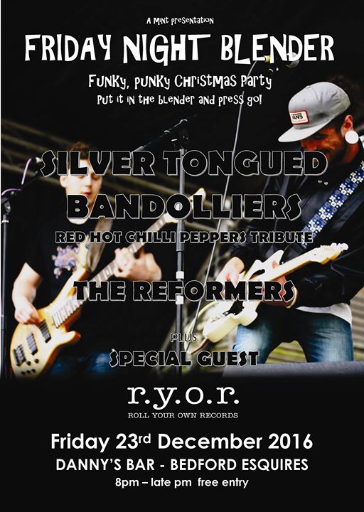 Coming up on Friday 23rd December we have Silver Tongues Bandoliers (with Red Hot Chilli Peppers tribute set) + The Reformers + Special Guest + Roll Your Own Records crew!