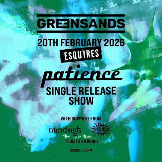 One of the best new bands in the area THE GREENSANDS are putting on their own show here in February, in celebration of their new single, Patience. Joining them on the night will be the equally buzzy Mindsigh and Cheap Bleach. Tickets are a snip at £8 advance, on sale now from See.