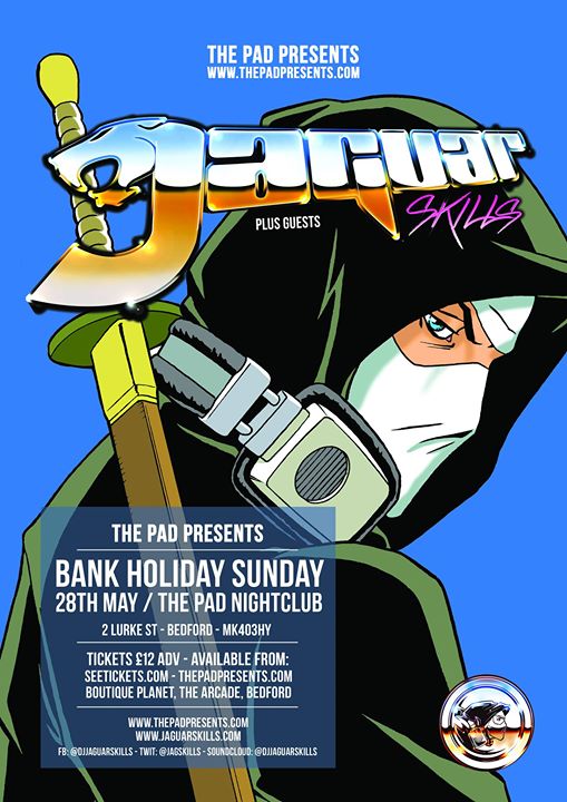 Well well well, this is probably one of the most intimate shows you will have seen this man play in many years – Jaguar Skills is coming to The Pad on Bank Holiday Sunday 28th May, a round off to an already amazing looking weekend, with Roni Size playing our sister venue Esquires on Friday 26th May and Kuenta I Tambu playing Esquires Birthday weekend closing party on the same night as Jag Skills!