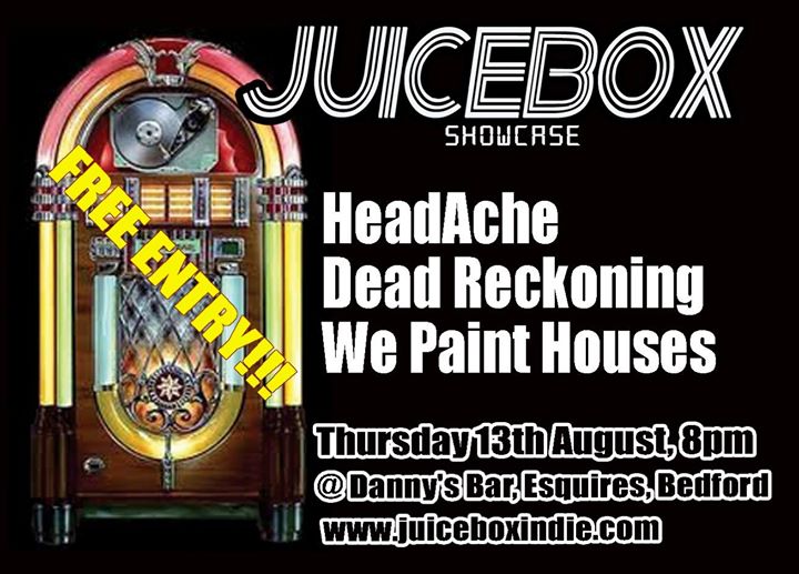 August’s Juicebox showcase brings us a bevy of up and coming bands. “We Paint Houses” begin the evening with a rocking foundation, Dead Reckoning (ex-Tortuga) will bring the Thunder from Milton Keynes, and Headache bring their own “south of Bedford” brand of Post-punk/Hardcore to Danny’s bar.