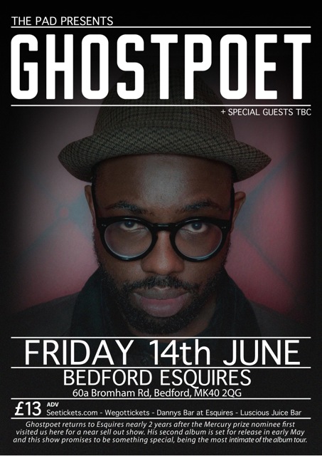 We are mega pleased to announce that we’re bringing Mercury prize nominee GHOSTPOET back to Bedford Esquires, nearly two years after he last played here to a near sell out crowd on a warm Thursday in October 2011.