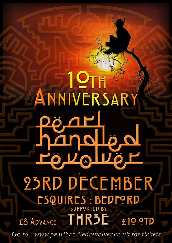 Pearl Handled Revolver will return to their home town venue Esquires to celebrate 10 glorious years together…so come join the party! Support will come from one of Bedfords finest – Thr3e.