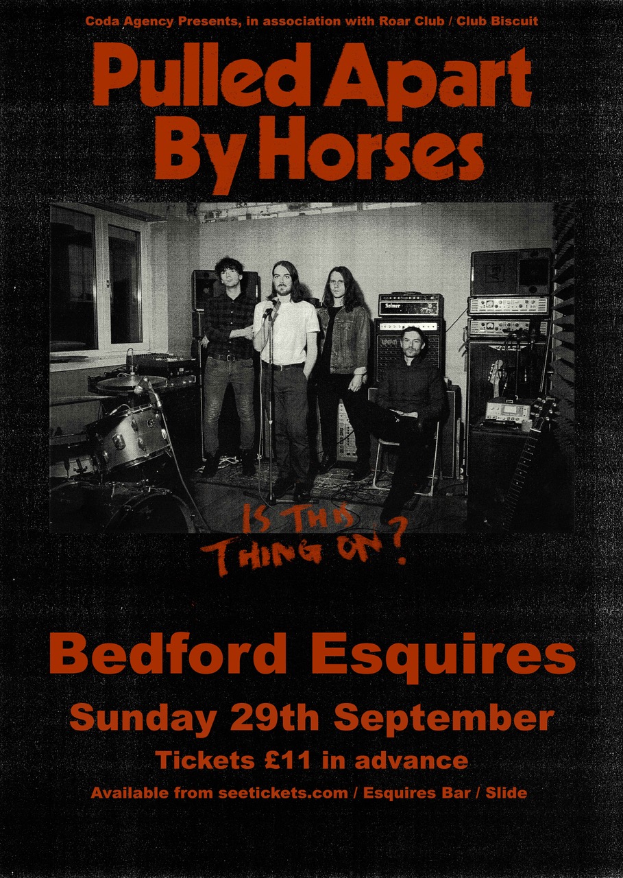 The Roar Club & Club Biscuit are delighted to be bringing PULLED APART BY HORSES to Bedford for their debut appearance at Esquires.