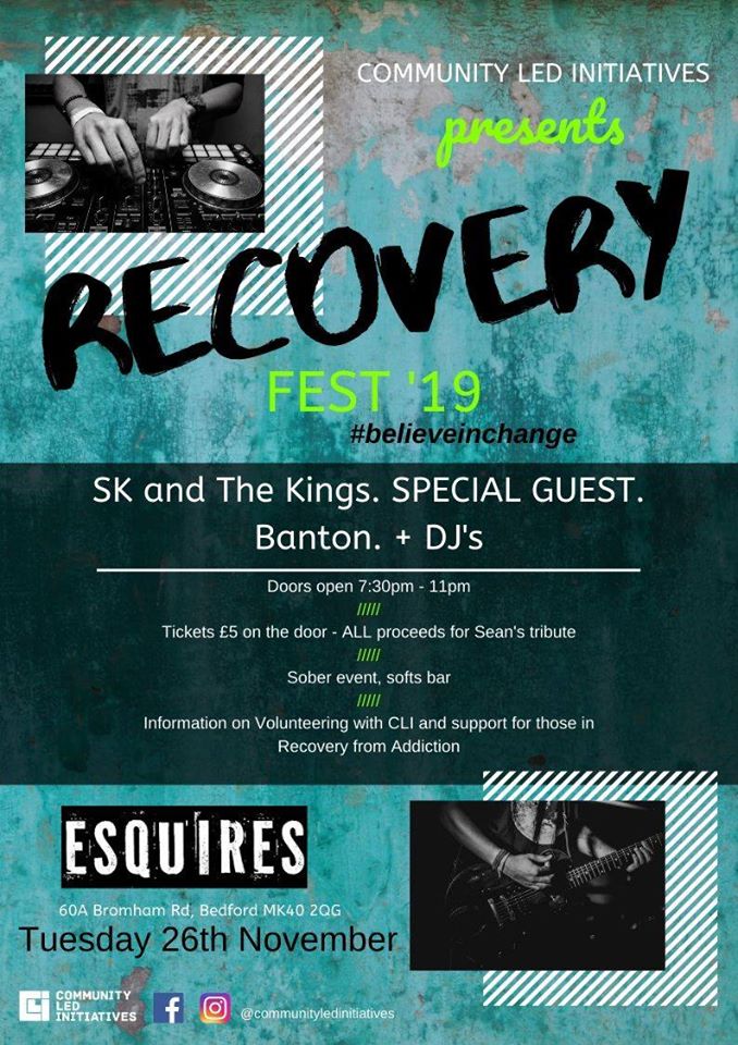 CLI are hosting a Recovery Fest at Bedford Esquires on the 26th November. A sober night with great live music, information about our organisation and how to get involved.
