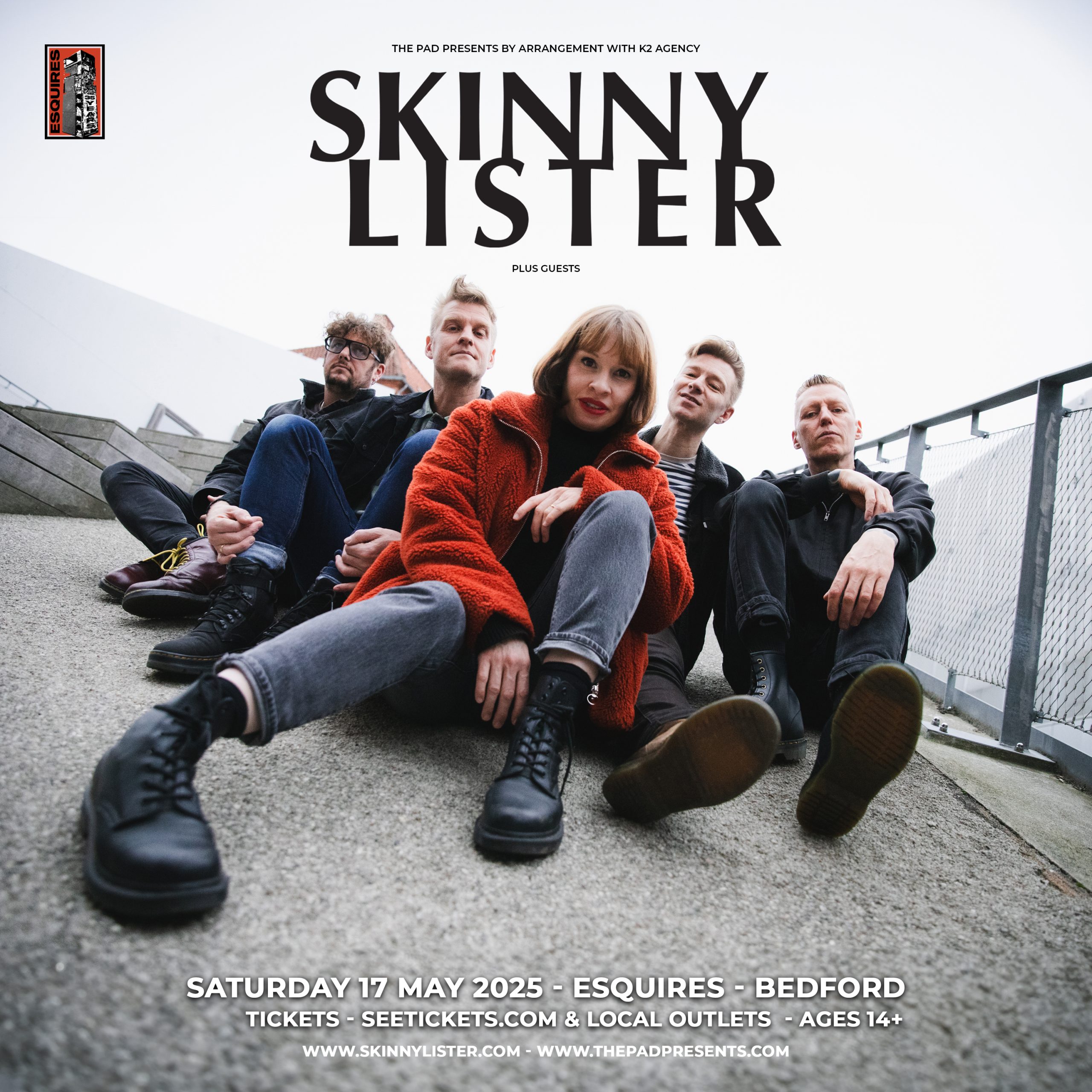 As the band’s career continues to see them passing the growing flagon of their experiences with every album and tour. They’ve led an endless parade gathering fans old and new, from the respected folk circuit to the riotous Download Festival, igniting pogoing mosh-pits at each. Over the past ten years they’ve travelled from rain-soaked London to the vast arteries of the USA, upgrading from narrow boat to Salty Dog Cruise, played huge tours across Europe and North America and headlined themselves across festivals, sweatboxes and ever-larger venues.Performing with some of music’s most tenacious live acts from Dropkick Murphys to Frank Turner, Boy George to Beans on Toast to The Bouncing Souls, not to mention reigniting their US fanbase with an epic tour across America with Flogging Molly in 2023; Skinny Lister’s formidable live rep more than proceeds them. And now with the tantalising promise of new material on the horizon, catch Skinny Lister doing what they do best at Bedford Esquires.