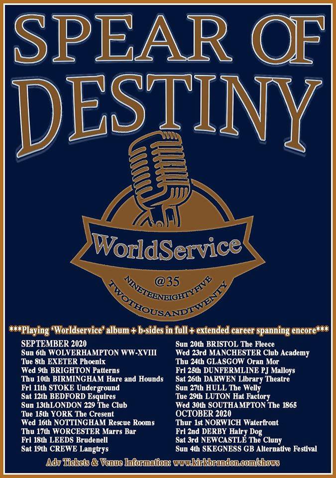 Following on from last years sell out tour for the 35th Anniversary of ‘One Eyed Jacks’ Spear of Destiny take fan favourite ‘World Service’ on the road this autumn and come to Bedford Esquires on sat 12th September.