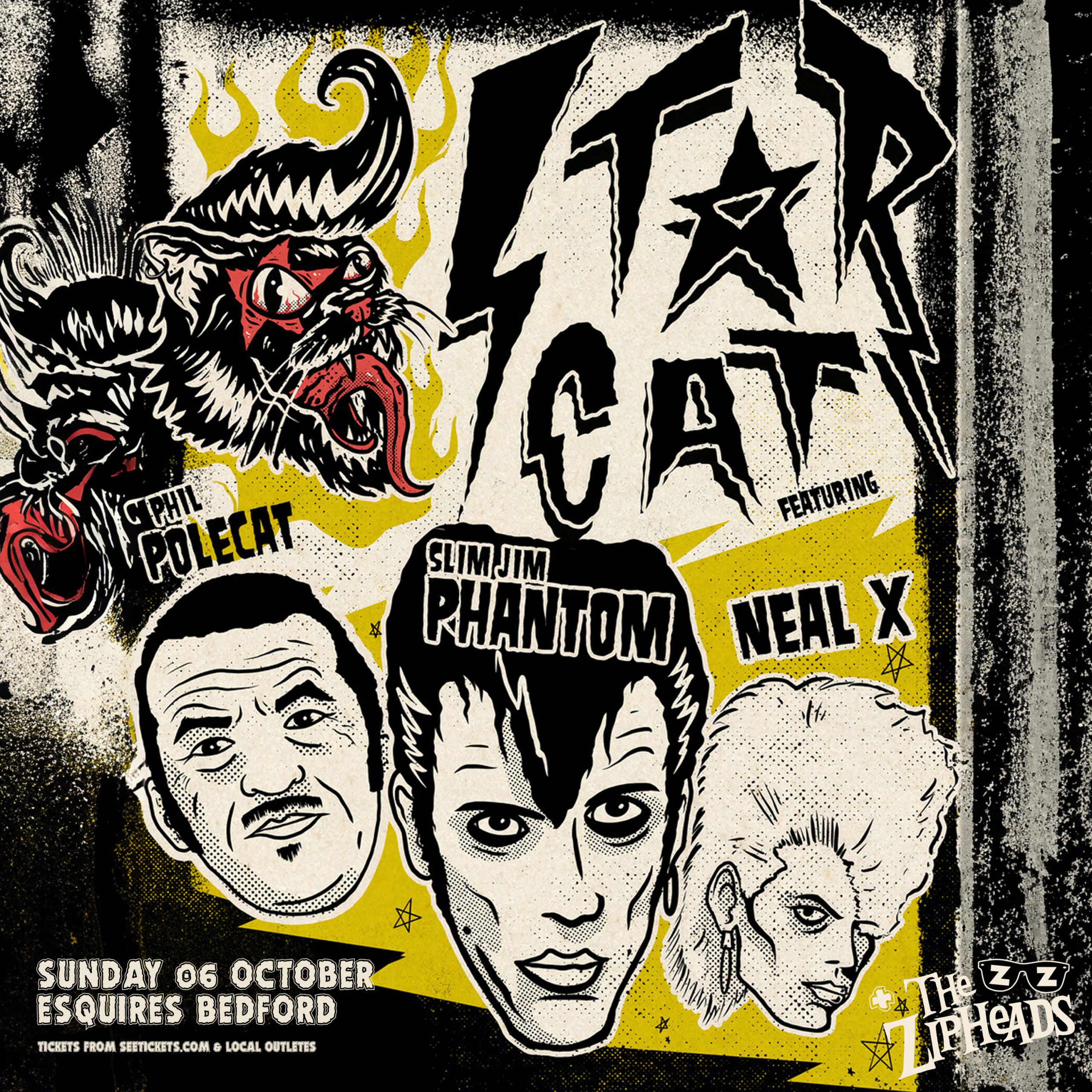 Prepare yourself for an evening of high-octane rock ‘n’ roll from 3 of the best as we welcome STARCAT the brand new band ft Slim Jim Phantom, Phil Polecat and Neal X to Esquires for one of their very first shows.