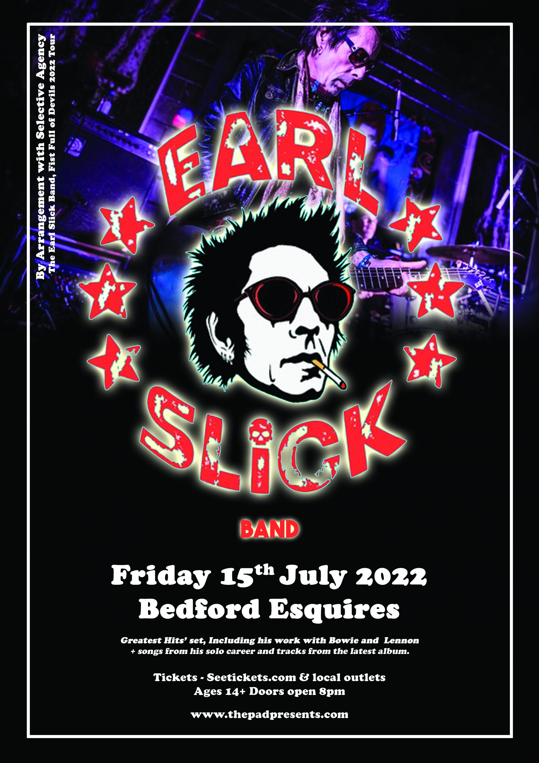 The Earl Slick band come to Bedford Esquires next July, Earl best known for his collaborations with David Bowie, John Lennon, Yoko Ono, Ian Hunter, David Coverdale, Buddy Guy, and Robert Smith brings his live band over for a UK Tour in the summer.