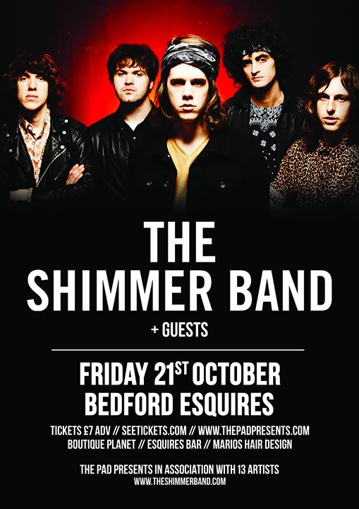 The Shimmer Band play the intimate surroundings of Holy Moly’s for their first visit to Bedford Esquires. Special guest suports comes from Alan Mcgee of creation records new signing Willow Robinson and opening the show will be the Greasy Diablos.