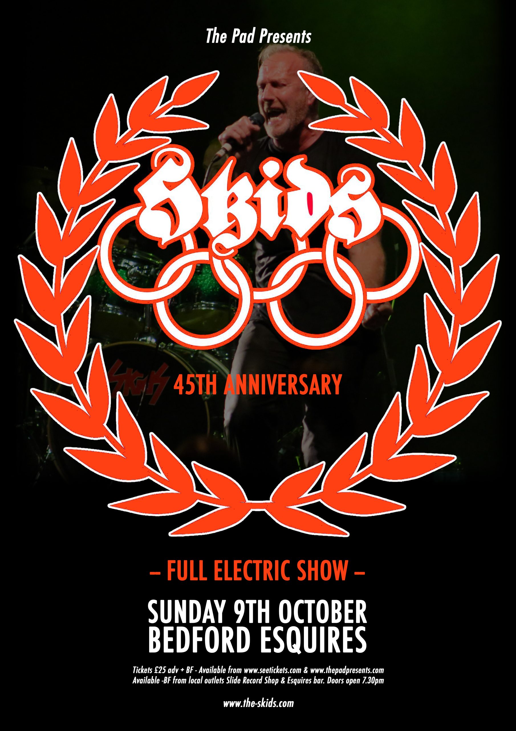 The Saints Are Coming ! (again) Very pleased to announce we are bringing The Skids back to Bedford again following their packed show at the Bedford Corn Exchange in 2018 this time in the more intimate surroundings of Bedford Esquires.