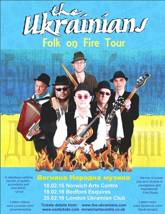 The latest tour – ‘Folk on Fire’ – is a compilation of the fastest, energy filled, folk inspired songs that they have produced in the last 25 years. You’ll hear a range of tracks, traditional (some hundreds of years old) alongside modern western classics, but all fused with Ukrainian roots and passion. A gig by ‘The Ukrainians’ is a truly unique musical event and not to be missed.