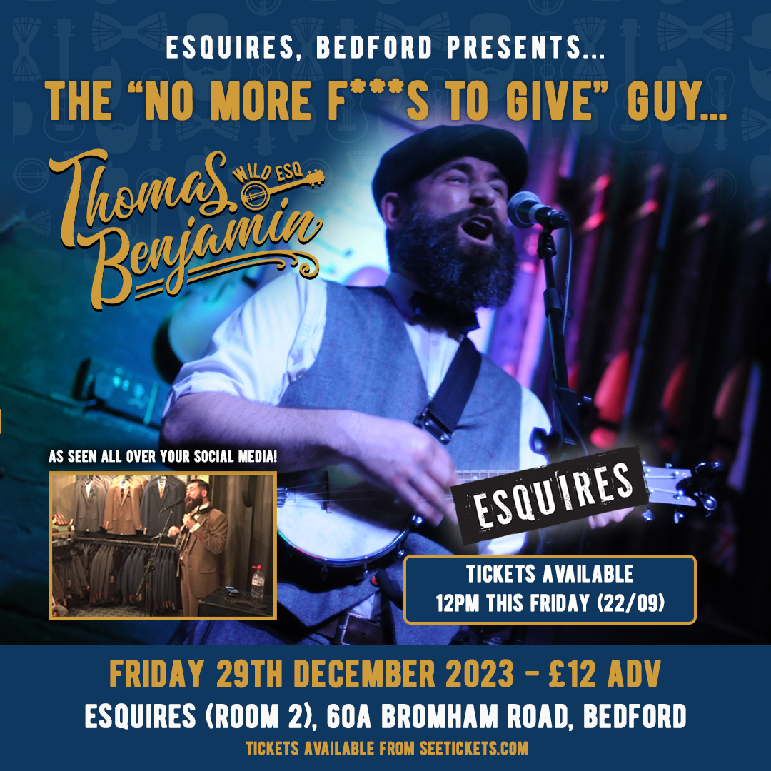 Viral sensation Thomas Benjamin Wild Esq. returns to Bedford Esquires for a special, hometown evening of music, laughter and raucous singalong fun to blow out that Twixmas malaise.