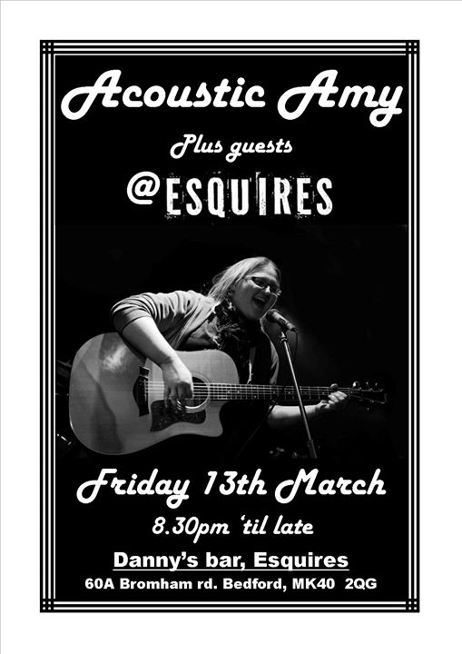 Acoustic Amy, Alex Appleton and Jake Pickford bring their acoustic sets to Danny’s bar at Bedford Esquires this Friday from 8.30pm. FREE ENTRY, pool table, near to bus and train stations, offers on selected shots, open until 2am. Bring your friends 😀