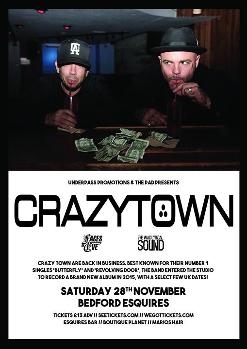 **TONIGHT** CRAZY TOWN // Faces of Eve // The Wax Lyrical Sound // SATURDAY 28th NOVEMBER // BEDFORD ESQUIRES