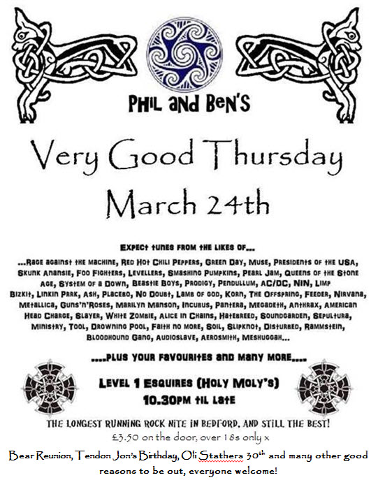 We’re back for our annual Very Good Thursday with Mutiny’s Phil and Ben., Bedford’s longest running rock night and it’s still the best! All your favourite rock, metal and alternative tunes to kick off the Bank Holiday weekend.