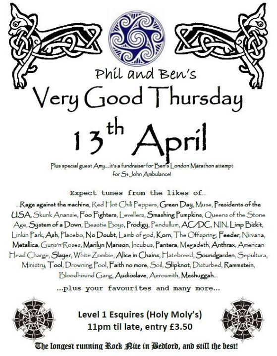 All your favourite rock, metal and alternative tunes….we’re back again for our yearly celebration of having a Friday off work and this time we’re raising money for Ben’s London Marathon run so search down the back of those sofas and bring your change!