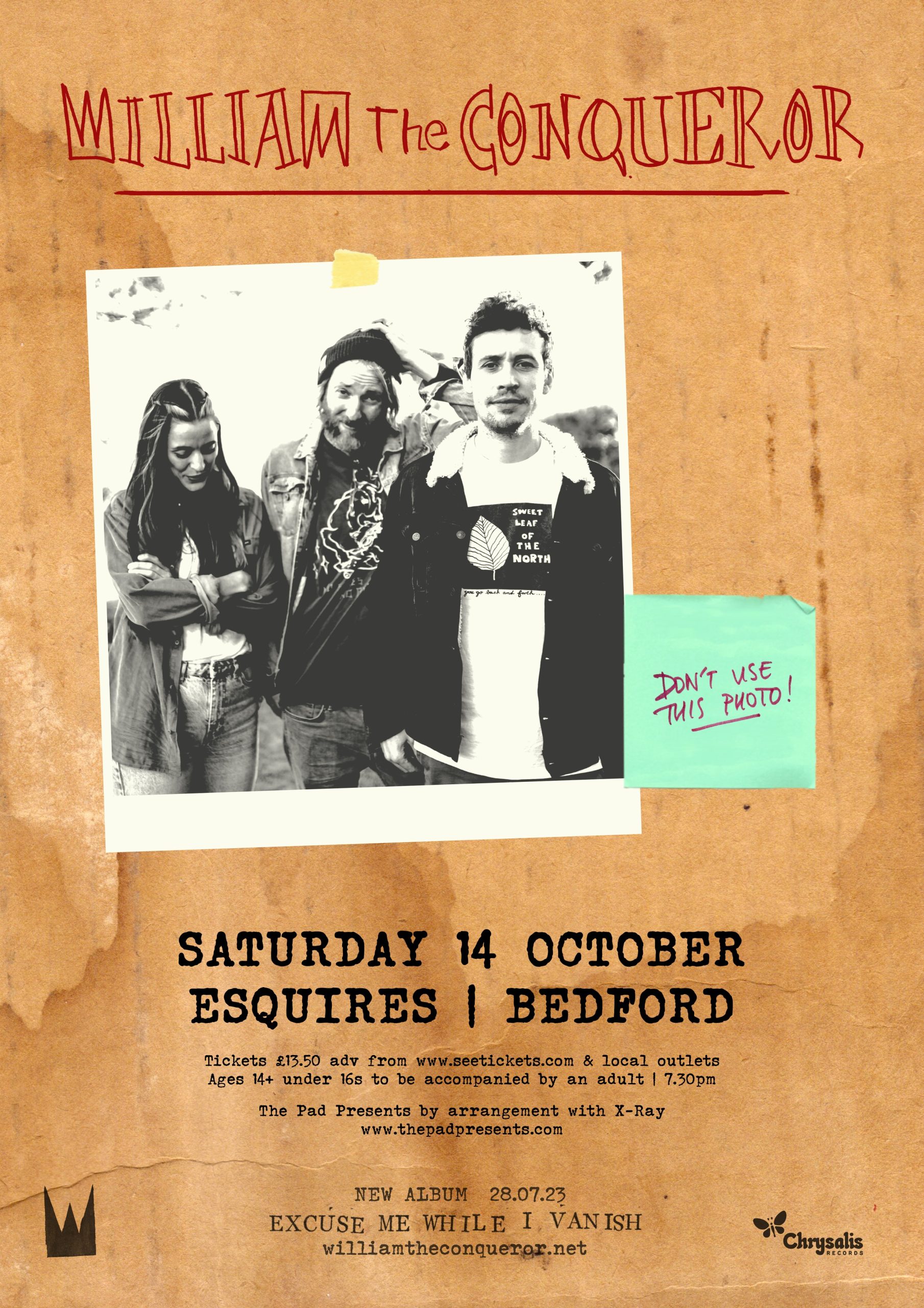 Joseph’s compelling semi-spoken vocals and swamp-blues-Seattle-scuzz guitars are propelled by the rhythm section of Naomi Holmes (bass) and Harry Harding (drums) as Excuse Me While I Vanish delivers an effortlessly winning blend of melody and ensemble dynamics, the most accomplished and undeniable William The Conqueror album to date.
